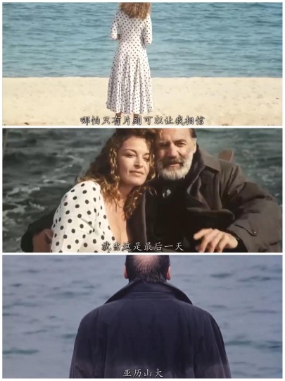 🎬永恒和一日丨1998丨133 mins 🇬🇷【希】西奥·安哲罗普洛斯/编+导 🏆1998年第51届戛纳国际电影节·金棕榈奖 ↓↓ 『错过昨日·贪念明日·何苦今日』【9.3分】 (影感3.8丨表达2.8丨表演1.8丨美感0.9) · 🎞️观影笔记 ↓↓ 0️⃣整体感受 如果明天你将离开人世,那么今天你会做些什么?你想做些什么? · 第一次欣赏安哲的作品,缓缓沉浸其中——全片95%以上的镜头都以第三人称视角呈现,五段记忆在时空里穿进和穿出的镜头设计,运镜自然到不易察觉,大段的中远景缓慢跟随长镜头,为这部电影增添了梦幻般诗意的美学气质。 · 影片通过罹患癌症的亚历山大,在告别人世的最后一天里,行走在现实和记忆时空交汇处反复告别的生命之旅,将内心深处的遗憾挖掘整理出来——对生命的不舍留念,对家庭的后知后觉,对诗歌的寻觅执着,对边界的若即若离,对永恒的迷恋奢求…… · 影片中阿尔及利亚的难民小男孩的设定,确是神来之笔,亚历山大和小男孩站在了生命的一尾一头,相互一日相处里的彼此慰藉和温暖陪伴,不仅完成了两个生命体的内心救赎,也让影片的主题『永恒和一日』得以在现实中传递下来。 · 越来越觉得,在进入中老年前,很有必要深深思考一下,对于注定将到来的死亡,我们可以提前做些什么,可以安顿好哪些执念和不舍。 · 1️⃣影感【3.8丨4分】 ①视听享受丨1分 ②镜头剪辑丨0.9分 ③场面调度丨0.9分 ④结构设计丨1分 · 2️⃣表达【2.8丨3分】 ①逻辑严密丨0.9分 ②情节出彩丨0.9分 ③主题深刻丨1分 · 3️⃣表演【1.8丨2分】 ①角色魅力丨0.9分 ②演技出众丨0.9分 · 4️⃣美感【0.9丨1分】 · 5️⃣写在最后 ↓↓ 1935年生人的安哲,亲身经历过二战和希腊建国战争的洗礼,加上彼时分崩离析的南斯拉夫中的波黑战争爆发不久,年过六旬的安哲身心的孤独和漂泊感油然而生。 · 人的一生,仿佛都在放逐之中,外界短暂的栖身安宁,并未触到内心深处孤独和不安的根基,于是明天和永恒逐渐成了一种平复的慰藉和寄托,让身在当下的个体,丢失或削弱了安于现状的专注和平静的勇气! · 影片结尾,亚历山大隐约中听清了心底的答案,明天会持续多久?会持续到永恒! · 永恒是什么? 在时间上,是永远比明天多一天; 在状态上,是安于当下的勇气和专注! ·